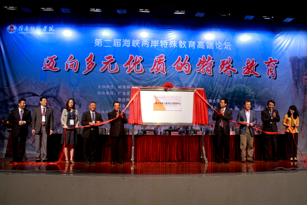 论坛开幕式上,举行了粤台特殊儿童评估与教育中心揭牌仪式,天籁列车向岭南师范学院捐赠助听器仪式、财团法人科技辅具文教基金会杨国屏董事长捐赠沟通辅具举行。
