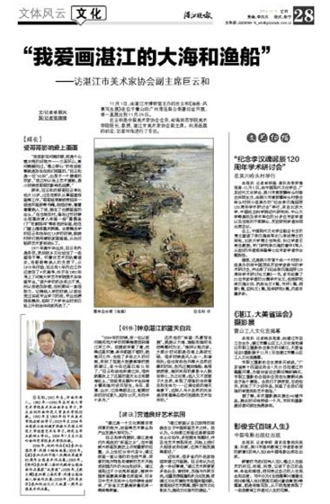 巨云和是中国美术家协会会员,岭南师范学院美术学院院长、教授,湛江市美术家协会副主席。利用画展的机会,记者对他进行了专访。