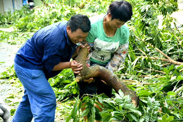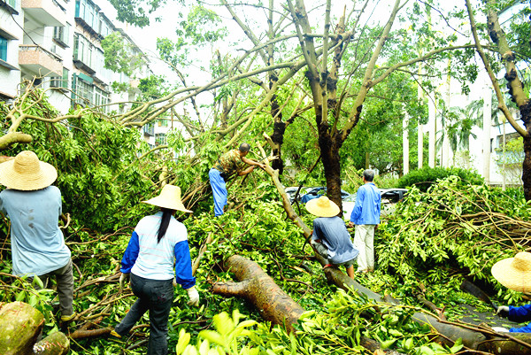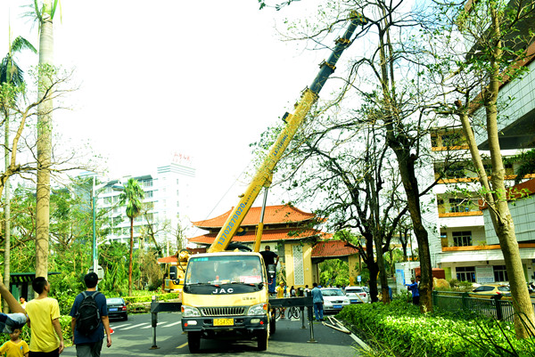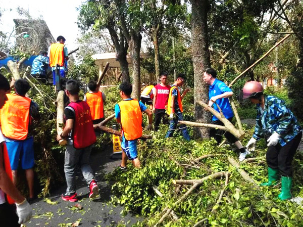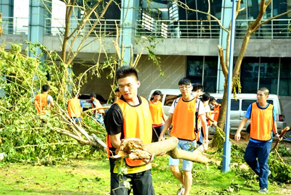 校园里所见之处一片狼藉,让人难以相信这竟是当初那么美丽的学校。广大青年志愿者积极参与到清理校园的志愿活动中,生科院14生技的许树榕就是其中的一名“小红帽”,主要参与清理古榕广场、博学园等地方的树枝垃圾,“看到古榕广场那几棵国宝级的高山榕被毁,好心痛,路面太多树枝,交通不便,而且不安全,为了校园的安全与美观,我们都有义务去清理。”她心疼地说道。