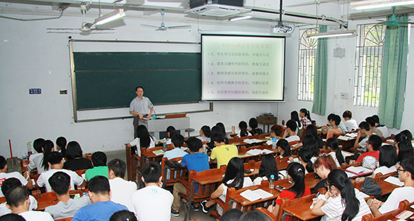9月21日下午,岭南师范学院党委梁英书记走上讲台,在该校第一教学楼107课室,为物理学院工业设计、机电技术教育两个专业的学生上了一堂别开生面的思政课,与学生们一起共同探讨“如何确保思政课取得满意的课堂教学效果?”,梁英用自己的课堂教学实践,说明应如何将学生兴趣“引”出来,让课堂“活”起来。他讲课的题目是:在教师与学生的相互激荡中升华。