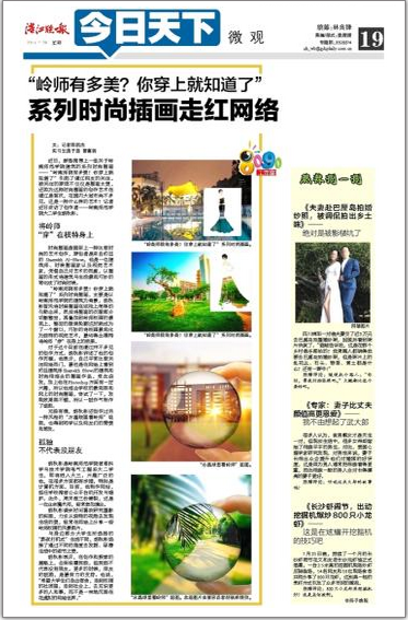 近日,新浪微博上一组关于岭南师范学院建筑的系列时尚插画——“岭南师院有多美?你穿上就知道了”引起了湛江网友的关注。被关注的原因不仅仅是插画太美,还因为这种时尚插画的创作艺术在湛江是首次,在国内大城市尚不多见。这是一种什么样的艺术?记者近日采访了创作者——岭南师范学院大二学生胡秋彬。