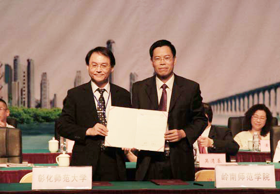 开营仪式上,罗海鸥校长和郭艳光校长分别代表岭南师范学院与彰化师范大学,签订合作协议书并互换纪念品。