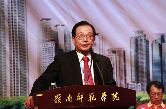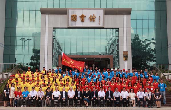 7月14日,以“中国梦•两岸情”为主题的“2015年湛台大学生夏令营”开营仪式在岭南师范学院音乐厅举行。台湾师范教育学会理事长、台湾教育大学系统吴清基总校长一行近80人,广东省台办林华轩副巡视员,湛江市委常委、宣传部部长陈云,湛江市台湾事务局黄昌旺局长、湛江市教育局李更盛局长,岭南师范学院罗海鸥校长、刘海涛副书记、李江凌副校长,以及相关部门负责人及相关人员参加了开营仪式。仪式由湛江市政府副秘书长林小伟主持。