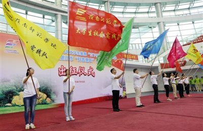 湛江日报7月14日讯 激情7月,青春实践。7月10日上午,由岭南师范学院与湛江市科协举行的,2015年学生暑期“三下乡”社会实践暨“科普惠农”行动出征仪式在岭师举行。6000多名师生即将奔赴省内外开展“三下乡”社会实践活动。