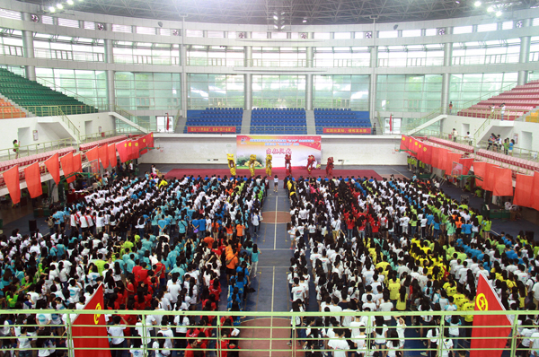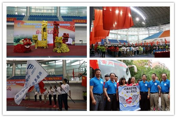 激情笃定入实践,青春追梦不止步;深入服务献基层,增长才干竭全力。7月10日上午,岭南师范学院2015年大学生暑期“三下乡”社会实践暨“科普惠农”行动在该校体育馆正式出征。广东省科协党组书记、常务副主席何真,岭南师范学院党委书记梁英,党委副书记彭权群,湛江市科协主席肖斌等领导及岭南师范学院大学生社会实践领导小组全体成员、200多支实践队的代表队员参加了此次出征仪式。出征仪式由岭南师范学院团委书记郭和才主持。