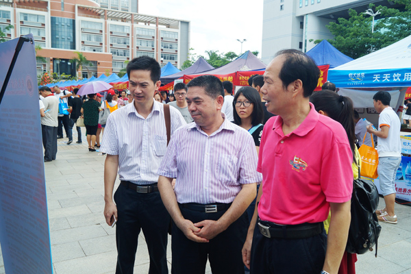 岭南师范学院党委刘海涛副书记在招生与就业处钟炳辉处长以及周明俊科长的陪同下巡视了咨询会现场,慰问在烈日下坚守工作岗位的老师们,叮嘱他们要尽力为考生家长答疑解惑,大力宣传学校品牌。并安抚在音乐厅外焦急等待讲座的家长们,许诺会让广大家长和考生得到心满意足的咨询。