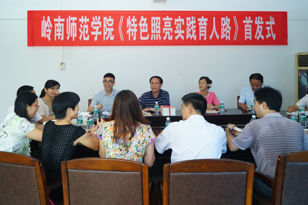 首发式上,本书主编、岭南师范学院党委办公室黄达海主任首先发言,从编书的背景意义、目标定位、任务分工和编选书稿过程等方面详细介绍了编辑成书的过程。《特色照亮实践育人路》是岭南师范学院“实践育人工作研究丛书”的特色案例篇,是对岭南师范学院实践育人工作的做法和经验的全面梳理和总结,立足校本实际,挖掘典型,总结提炼,找出特色,形成亮点。全书分为“落实立德树人,创新教学模式”、“遵循育人规律,突出活动主题”、“充实实践内容,增强教育实效”、“增设锻炼机会,激发实践活力”、“延拓实践平台,推动协同育人”五个部分,图文并茂、蕴涵丰富地讲述着学校实践教学工作、专业类的学生第二课堂活动、服务实践育人工作、顶岗锻炼实践育人、对外交流实践育人等五大类别的特色案例。本书的编印出版充分调动起学校各有关职能部门和二级学院对实践育人工作进行理论探索和实践研究的积极性,进一步凝练实践育人的校本特色和亮点,提升学校实践育人工作的科学化水平。黄达海指出,本书在选材和编辑方面体现了四大特点:内容的广泛性,特色的原创性,典型的示范性,实践的创新性。副主编赵海波认为岭南师范学院实践育人工作出色、百花齐放,成果丰硕、特色明显,编辑出版实践育人丛书影响积极、意义深远。副主编程向前就编书的组稿、分类以及实践育人工作案例的提炼等谈了工作体会。