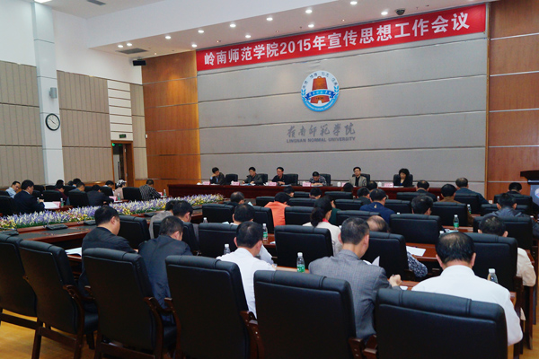 4月9日下午,岭南师范学院在该校国际会议厅召开2015年宣传思想工作会议。岭南师范学院党委刘海涛副书记、黄钢副院长、李江凌副院长、邵乐喜副院长、兰艳泽总会计师等校领导出席会议。岭南师范学院党委梁英书记主持会议,强调宣传思想工作要主动担当、主动履职、主动有为。