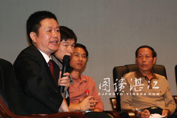 “拥抱绿色石化”——《湛江日报》记者异地采访见闻交流会,冯宗财(左一)解释关于环保的种种疑问。(受访者供图)