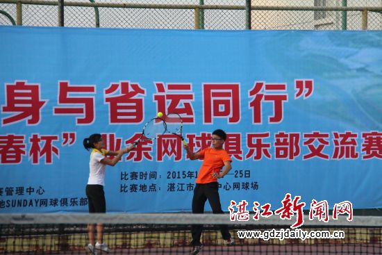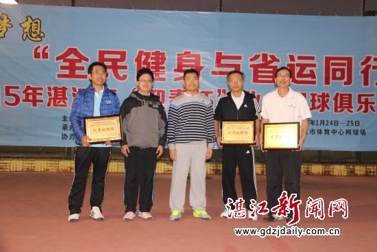 湛江新闻网1月24日讯:1月24日,由市体育局主办、市社体中心承办、市体育中心、绅地SUNDAY网球俱乐部协办的蓝色湛江 金色梦想“全民健身与省运同行”2015年湛江“迎春杯”业余俱乐部交流赛在市体育中心网球中心进行。经过一天的激烈比赛,嘉庆网球俱乐部获得冠军。