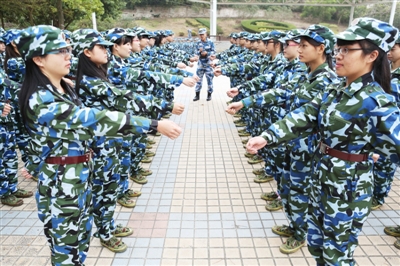 岭南师范学院5000多名大一新生的情况也和该校大二、大三、大四老生有所不同。1月4日—1月14日,岭南师范学院2014级新生进行了为期11天的军训。