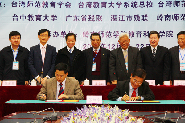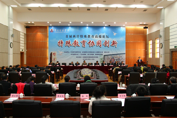 省教育厅12月29日讯 12月21日至22日,以“特殊教育协同创新”为主题首届海峡两岸特殊教育高端论坛在岭南师范学院举行。这次论坛由台湾师范教育学会、台湾教育大学系统总校、台湾师范大学、屏东大学、台中教育大学、广东省残联、湛江市残联、岭南师范学院联合主办,岭南师范学院教育科学学院承办。论坛汇聚了海峡两岸30所高校、4所特殊学校与辅导机构共计86位特殊教育领域的专家、学者讲学论道,带来了8场主题报告、28场分组报告,为岭南师范学院纪念师范教育110周年增添了浓厚的文化气息,为两岸特殊教育的协同创新添上了浓墨重彩的一笔。