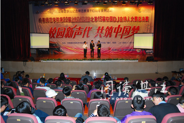 碧海银沙12月17日讯 12月14日晚,岭南师范学院校第22届文体艺术节系列活动之第15届校园DJ主持人大赛总决赛在音乐厅举行。出席本次比赛的领导嘉宾有校团委李亚九副书记,校团委组织部莫琼玉部长以及担任此次比赛评委的人文学院新闻系老师。到场的还有该校各个学院的同学们以及来自广东医学院、广东海洋大学、广东海洋大学寸金学院的广播台、广播站的同学们。
