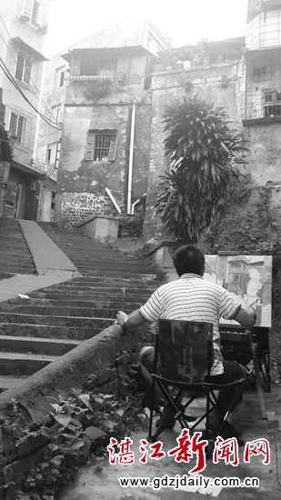 在赤坎老街,常能看见画画爱好者在精心描绘。