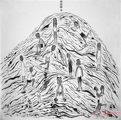 “我的水墨画的题材很多都是一些儿童嬉戏游玩的场面,那是因为我觉得轻松地游戏玩乐才是人类最理想的生活。”