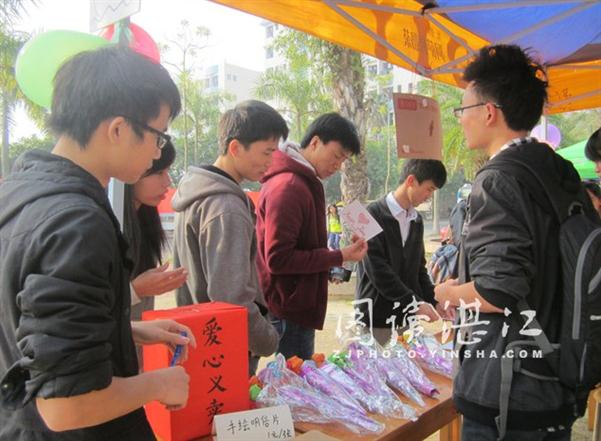 碧海银沙网12月22日讯 12月21日上午,湛江师院数计学院团委青协实践部与勤工中心暖流基金会在该校体育馆前联合开展该学院的首届爱心义卖活动。