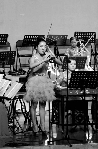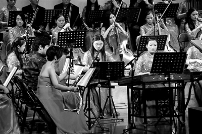 湛江师范学院师生在演奏经典民族音乐《君子兰》。