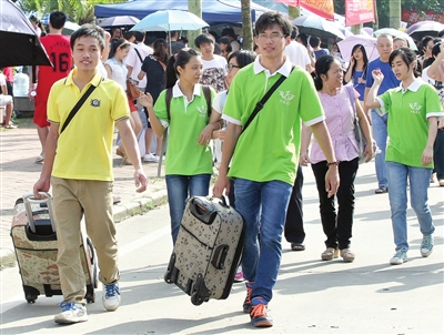 昨日是湛江师范学院新生报到的日子,许多新生刚到学校就受到学兄学姐们的热情接待和帮助。