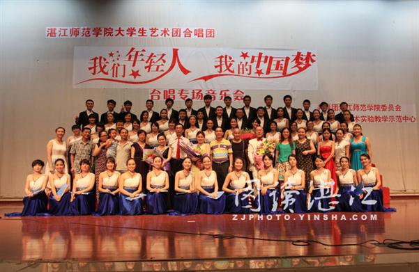碧海银沙7月3日讯 6月29日晚,夏日校园芬芳馥郁,歌声迷人。湛江师范学院大学生艺术团合唱团的专场演唱会——“我们的年轻人•我的中国梦” 在该院音乐厅举行,为正在忙碌的复习迎接期末考试学子们及湛江的音乐爱好者送上了一顿精美又轻松的精神食粮。