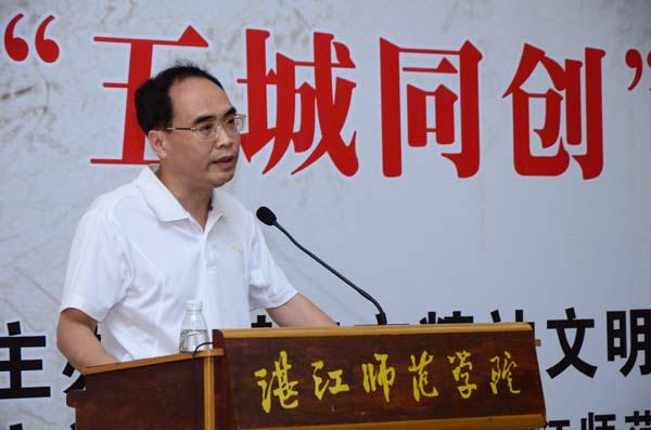 广东省教育厅6月20日讯 6月18日下午,由湛江市精神文明建设委员会办公室主办的“道德讲堂——五城同创与市民实践”专场活动在湛江师范学院图书馆学术报告厅开展。本次道德讲堂由湛江师范学院党委宣传部部长、副研究员陈恕平主讲。湛江各县(市、区)文明办主任、市文明委成员单位分管领导、市“五城同创”志愿者代表、市民代表及以及湛江师范学院师生代表等共230人参加了本次活动。