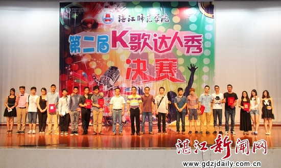 湛江新闻网6月19日讯 6月15日晚,由湛江师范学院校团委和校社联共同主办的第二届K歌达人秀决赛在音乐厅火热进行。该校校团委郭和才书记、李亚九副书记等领导老师、二级学院团委书记(负责人),以及来自广医、海大、寸金学院、海洋大学海滨校区的社团同学们观看了比赛。比赛现场座无虚席,气氛热烈,加油呐喊和欢呼声不断。比赛开始,现场参赛选手依次进行了自我介绍,接下来播放的参赛选手抽签视频,让在场观众真实了解了选手们的曲目选定过程。