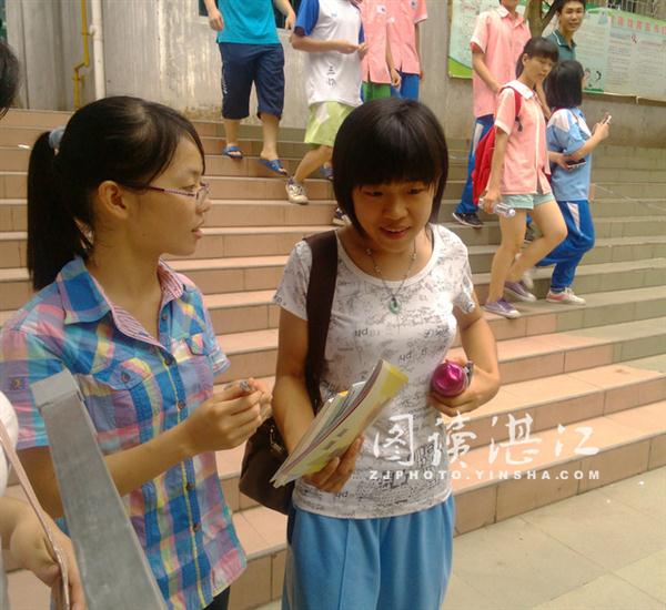 在现场,刚考完的学生纷纷上前咨询队员们,很多学生刚从考场出来抱着自己的书,从中拿出几本捐给服务队,也有人上前问队员们活动什么时候结束,还向队员们要电话。