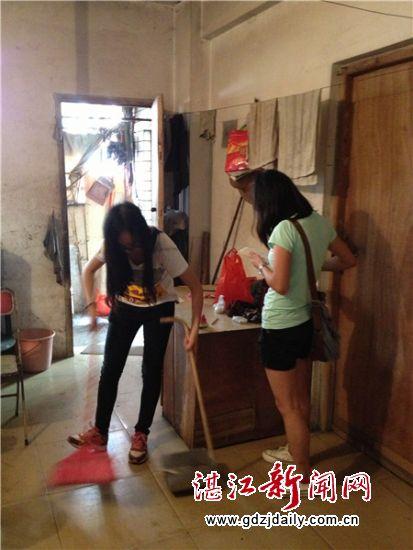 与陈伯聊完天,志愿者们又忙着给陈伯打扫卫生。一些人负责煲开水、一些人负责扫地拖地、一些人负责抹桌子椅子……经过志愿者的一番打扫过后,整个屋子更干净整洁。搞完卫生志愿者们就准备回校了。临走时,他们一遍遍地叮嘱陈伯天气热了记得多喝水,桌子上有志愿者送的水果,要记得吃,平日里要注意安全,有东西要搬的就等他们去的时候再搬......
