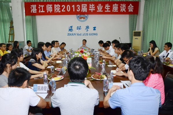 广东省教育厅网5月31日讯 5月29日下午,湛江师范学院2013届毕业生代表座谈会在该院紫荆楼301举行。湛江师范学院党委刘海涛副书记、学生处李粤处长、李爱群正处级干部和31名湛江师范学院毕业生代表进行了深入的交流。座谈会由李粤处长主持。