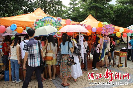 湛江新闻网5月27日讯 为提高大学生的人际交往能力,培养其环保节俭意识,帮助贫困学生,湛江师范学院于5月25日在雷阳广场举行第六届“跳蚤市场”活动。