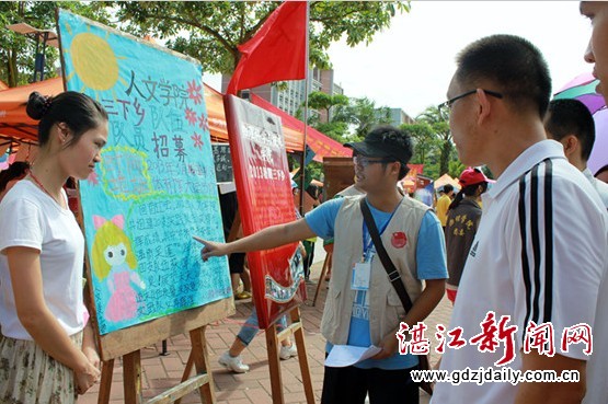 湛江新闻网5月26日讯 为提高队伍质量,找到更多能力与爱心并重的同学加入到三下乡队伍中去,5月26日早,湛江师范学院人文学院“粤情系湘梦”三下乡社会实践队的队员现场招募活动在体育馆前拉开序幕。