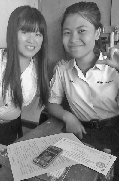 @七月洛英:赴泰实习第三天——早上七点就到学校签到了,其实只睡了六个小时,对于我这个坐了十个小时车,还晕车的人,是远远不够的。最可怜的是,泰国这里中午没有午休,一个小时午饭后就要直接上课了。他们上课的气氛自由得简直就是课外活动,化妆的、玩手机的、聊天的,应有尽有啦。