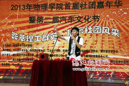 湛江新闻网5月22日讯 “荟萃理工群英,尽显社团风采”,日前,湛江师范学院物理学院举办了一场别开生面的社团嘉年华,这次嘉年华主要由“汽车文化节”、“大型科普宣传展览”和“工业设计优秀作品展览”三个部分组成,与一般载歌载舞的嘉年华不同,活动展示的不仅仅是同学们的文娱才艺,更展示了理工科学生的逻辑思维和实践能力。