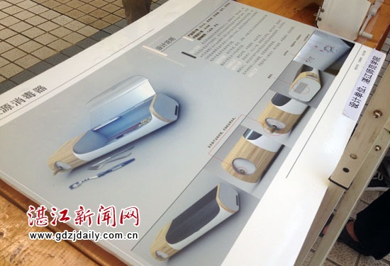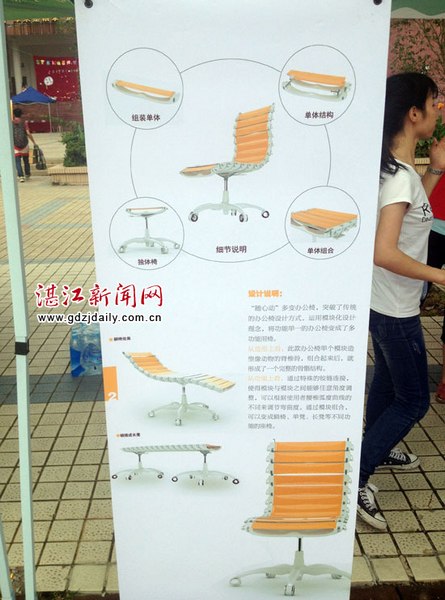 走进嘉年华会场,只见两旁陈列着各种“小手工”,这些“小手工”都是理工科学生的设计作品,凝聚着“大智慧”。其中,一个“绿色能源消毒器”引起了大家的注意,据设计者介绍,这款消毒器主要用于少量餐具的消毒,它的亮点在于用手转动手柄即可给消毒器“充电”,把餐具放进消毒格内即可,围观的同学们津津有味地听着介绍,跃跃欲试地摆弄着消毒器。除了“绿色能源消毒器”,现场还展出了多个理工专业学生的设计图和成品,例如:单手残疾人砧板、可分体多用办公椅、酸奶机和调味瓶等等,即使是炎热的艳阳天,展场依然吸引了不少同学和老师前来参观体验。