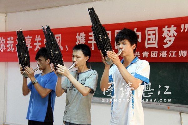 本次活动以“文明、和谐、关爱、互助”为主题,为特校的学生捐赠了书籍、书包等学习物品。活动中,特校的学生们表演了一段笙合奏——《草原骑兵》,悦耳动听的音乐打动了在场观众们的心,掌声连连不断。在湛师志愿者表演的魔术节目中,特校的学生们开心地参与互动,绽放出欢乐的笑容,现场热闹非凡。