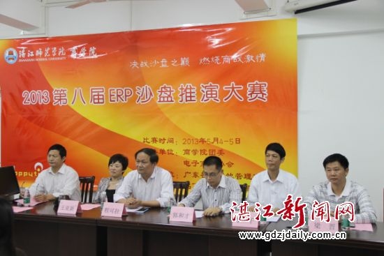 湛江新闻网5月4日讯 湛师第八届ERP沙盘推演大赛于5月4日早在燕雷楼二楼ERP沙盘模拟实验室开幕。商学院跨专业自由组队的12支队伍共60名优秀选手参加比赛,湛师教务处程可拉处长、团委郭和才书记、商学院王亚新院长,商学院李干书记、梁晋副书记,邬建平副院长等出席本次开幕式。