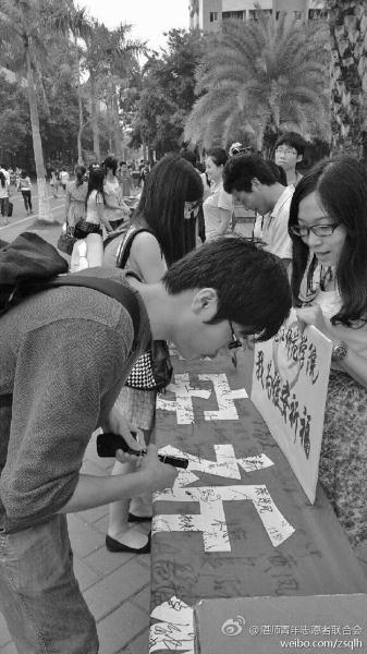 湛江晚报4月22日讯 雅安地震牵动了广大湛江人的心,湛师各高校学子昨日也纷纷通过举办各种活动,为雅安祈福!