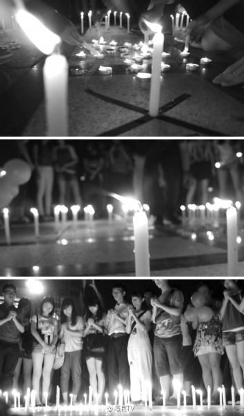 @Chris霖:20日晚,广东海大学校中心广场,点亮了祈祷的蜡烛,心系雅安同胞,加油!