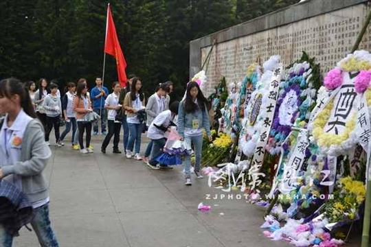 早上8点30分,在团委干部的组织带领下,各支部志愿参加扫墓的同学有秩序地往寸金烈士陵园走去。到达烈士陵园后,先由学生代表献上同学们亲手制作的花圈以寄托对革命烈士哀思之情;紧接着,由法政学院“爱我湛江历史服务队”的三位历史讲解员为同学们讲解了先烈的英雄事迹。在听志愿者们解说的过程中,同学们表情严肃,认真听讲,都被先烈们为解放国家和民族而不惜牺牲生命的大无畏精神所深深感动,现场庄严而肃穆。这不仅让同学们了解了历史,明白了肩上的使命,也使同学们坚定了信念。然后,同学们按顺序走上前亲手献上了小白花并且围绕着烈士陵园环走一圈,以表达对烈士们缅怀和敬仰之情。