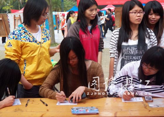 此外,青协实践部的“用心书爱 情传湛师”送明信片活动也在如火如荼进行着。过往的师生在青协实践部为其提供的精美明信片上,写下他们想对亲朋好友祝福的话语,然后由青协工作人员在活动结束后送到他们手中。校党委刘海涛副书记和青联干部一行人到摊点视察,刘海涛副书记听着了摊位工作人员的介绍,不禁点头称许,并也在明信片上书写寄语。