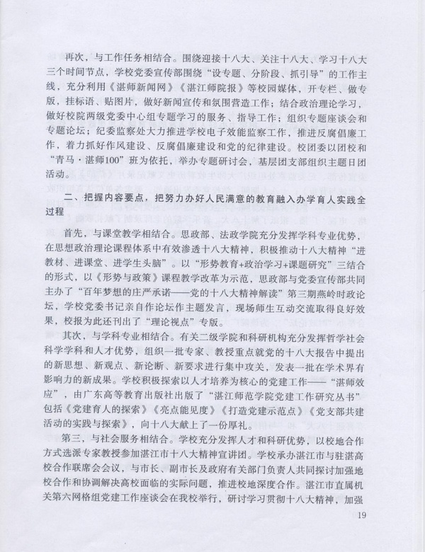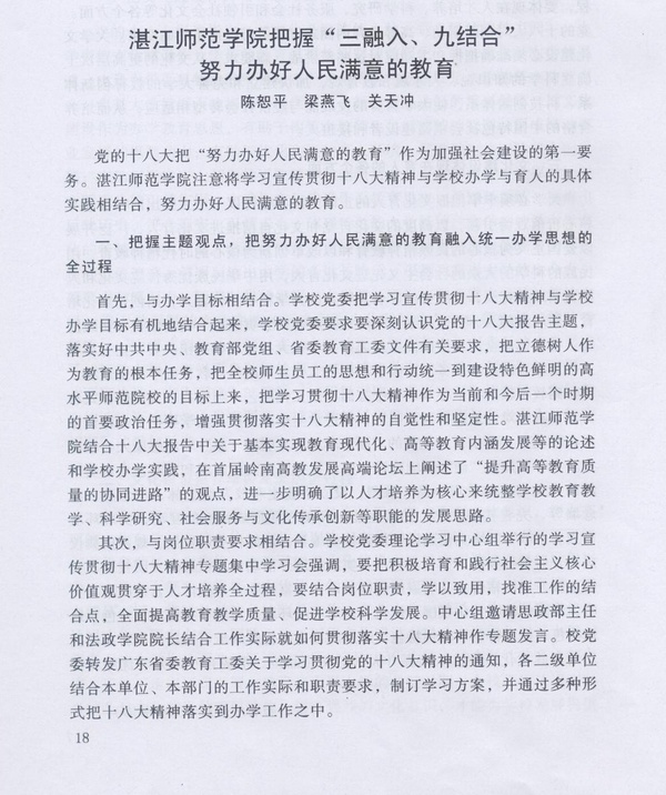 广东省教育厅网2月28日讯 由教育部主管、国家教育行政学院主办的《高教领导参考》2013年第4期发表《湛江师范学院把握“三融入、九结合”努力办好人民满意的教育》一文,并列上“本期要目”。这是2009年以来湛江师范学院发表在《高教领导参考》的第七篇经验。
