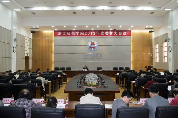 广东省教育厅网2月26日讯 2月23日,湛江师范学院党委扩大会议在学院国际会议厅召开。会议的主要任务是,深入学习贯彻党的十八大、省委十一届二次全会和全省教育“创强争先建高地”动员部署会暨2013年度工作会议精神,回顾总结湛江师范学院2012年工作,研究部署2013年工作,加强作风建设,进一步解放思想,凝聚力量,共同努力,攻坚克难,着力加快建设特色鲜明的高水平师范院校。湛江师范学院院领导梁英、罗海鸥、刘海涛、黄钢、刘周堂、李江凌、邵乐喜,湛江师范学院党委委员、各单位党政主要负责同志(含主持工作)、基础教育学院和附中党政正职等73人出席了会议。会议分别由梁英书记、罗海鸥院长主持。