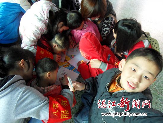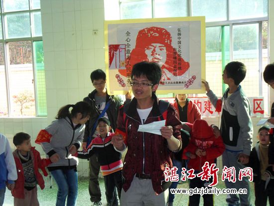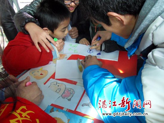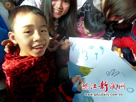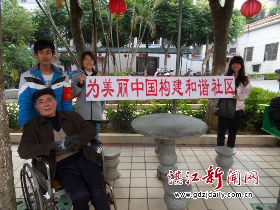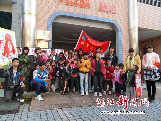 湛江新闻网1月20日讯 为了积极响应党的十八大报告所提出“构建美丽中国”与广东省提出“建设幸福广东”的号召; 2013年1月20日上午,湛江师范学院流芳文化团郑光华组建了一支八荣八耻宣传队,并带领该宣传队的十八名青年志愿者走进了湛江市儿童福利院、湛江社会福利院,开展以“青春情暖为美丽中国构建和谐社区”为主题的关爱社区孤儿、孤寡老人志愿服务活动,在寒冬里,为福利院的老伯伯和小朋友送上爱的温暖和爱心大礼包,让他们感觉到像是滋润在寒冬里的阳光一样。