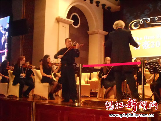 12月29日晚上,德国曼森格莱德巴赫音乐学院青年交响乐团为湛江广大观众献上了一场精彩的晚会演奏。席间,既有人们耳熟能详的《蓝色多瑙河》;也有外国乐手演奏起来一样充满韵味的《梁祝》。其中,德国曼森格莱德巴赫音乐学院青年交响乐团还专门邀请了我市首支少年室内乐团的小提琴手、我市小提琴家一起进行演奏。在抒情的《茉莉花》和激昂的《匈牙利舞曲》乐声中,洋溢着中德两国音乐学子的浓烈友情和人类共同的优秀文化。湛江市政协、市旅游局、外事局和湛江师院等领导,出席了这场别有韵味的音乐会。