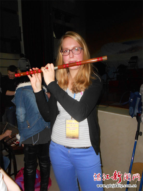 湛江新闻网12月30日讯 近日,来自贝多芬的故乡——德国曼森格莱德巴赫音乐学院一行52人的青年交响乐团,首次莅湛与我市音乐学子进行热情的文化艺术交流。12月28日,他们来到湛江师范学院音乐学院,与湛江师范学院音乐学院民乐团进行了风格迥然的演奏交流。一边是古筝、竹笛;一边是铜管长号。中外乐曲融汇一堂,激起了场上场下的阵阵掌声。