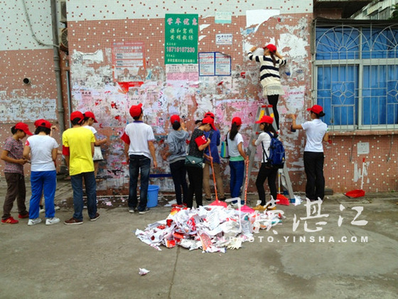 碧海银沙网12月20日讯 为营造卫生、整洁、文明、和谐的校园氛围,给广大师生创造一个干净卫生的学习、生活环境,10月底至12月中旬,湛师青年志愿者联合会组织来自人文院、物理院、数科院、生科院、商学院等5个二级学院的480多名青年志愿者,在全校范围内重点开展了一次彻底清除校园“牛皮癣”的总动员活动。