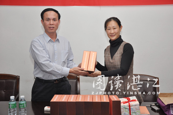 梁英书记代表湛师向湛江市博物馆捐赠书本