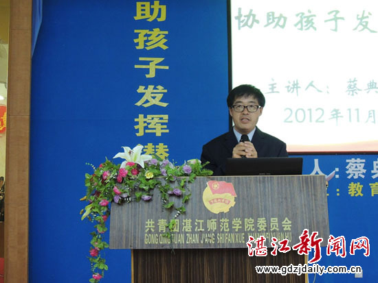 湛江新闻网11月26日讯 11月25日晚,应湛师教科院学术调研部诚挚邀请,台湾台东大学教授、世界资优协会会长蔡典谟教授在湛师弘雷楼311室作了一场关于“协助孩子发挥潜力”的教育专题讲座。教科院领导班子、感兴趣的师生参加了本次讲座,也吸引了许多幼儿园孩子的家长和老师前来学习。