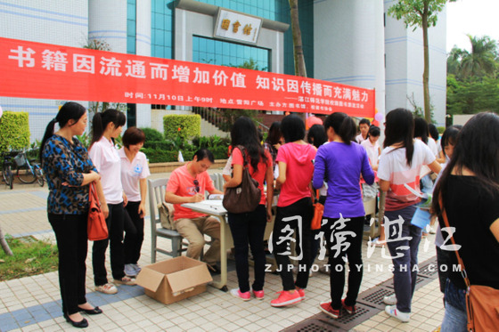 碧海银沙网11月10日讯 11月10号,湛江师范学院图书馆和读书协会在雷阳广场联合举办湛师首届图书漂流活动。该活动的主题为“书籍因流通而增加价值,知识因传播而充满魅力”,目的是鼓励同学们能阅读更多的书,并提供一个读书心得交流的机会。参加本活动的嘉宾有湛师图书馆陈俊群馆长、《粤西越美》杂志主编冼汉文先生。