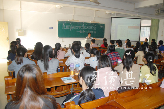 11月2日下午,暨南大学谭天教授在湛江师范学院新闻系讲《新闻栏目官方微博的实证研究》现场