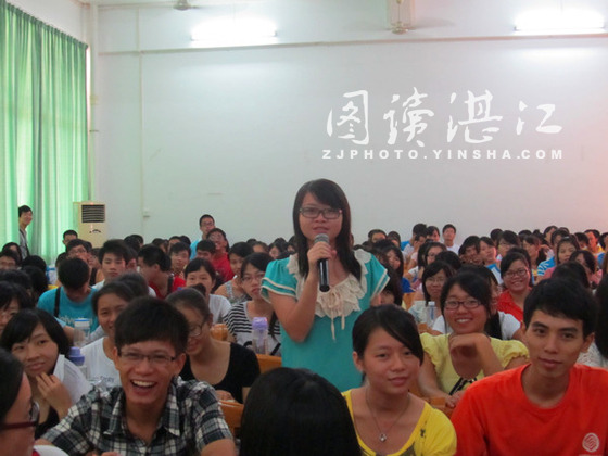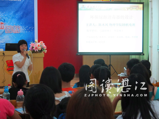 碧海银沙网10月17日讯 10月14日,来自湛师物理学院09机电的陈木凤同学在鸿园四楼学术报告厅给湛师同学们带来了一场关于环保绿源消毒器的设计过程的精彩演讲。